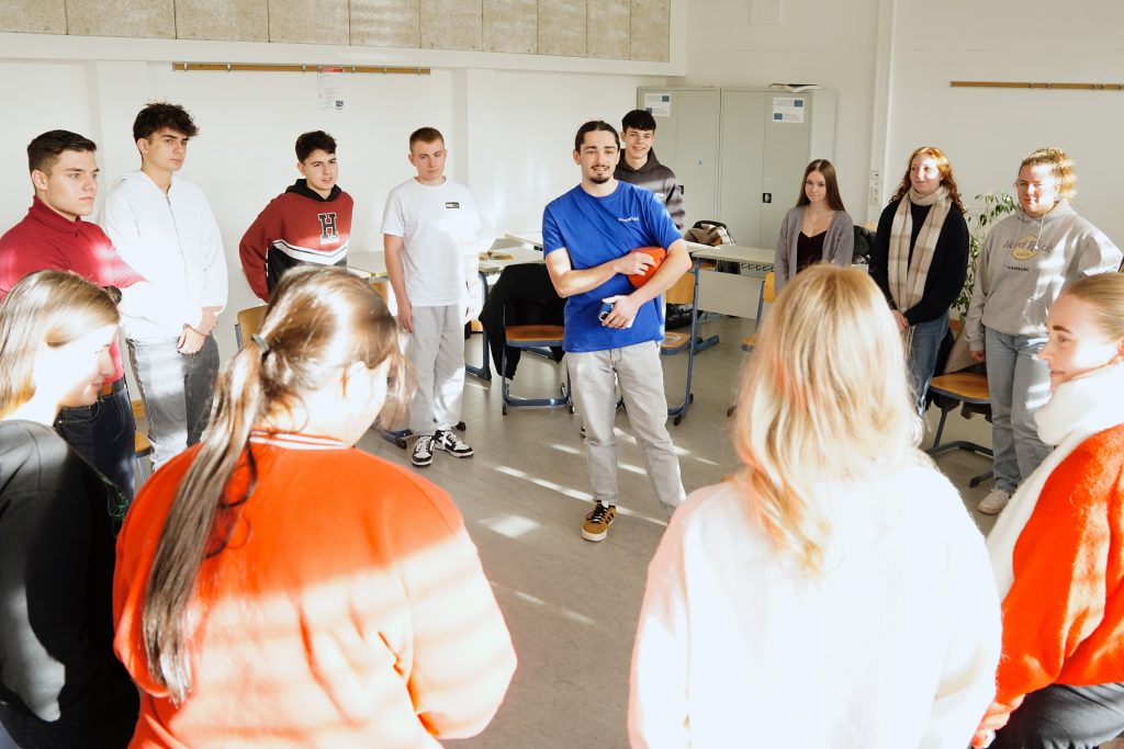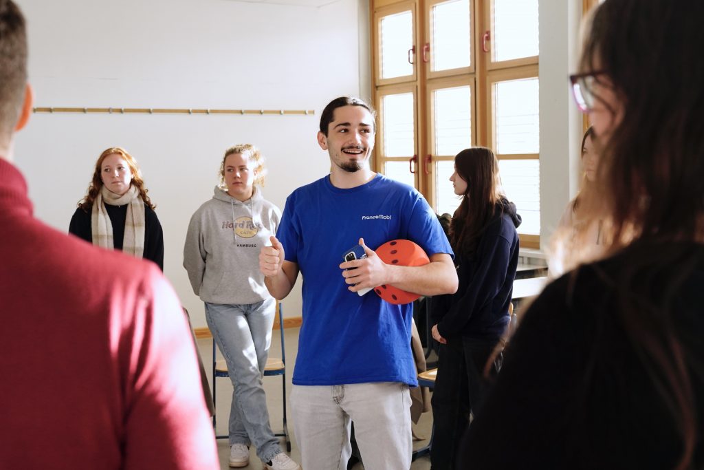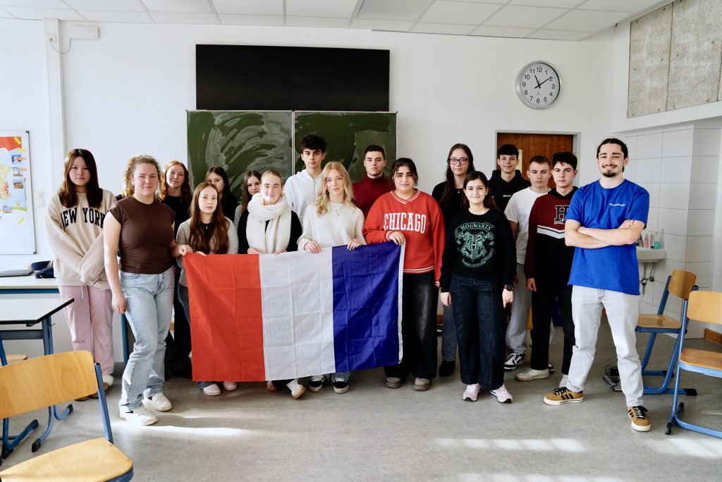 Besuch aus Frankreich: Blaise TESSON, der französische Lektor vom Programm FranceMobil war auf Einladung der Französisch-Lehrerin Frau Stein am 12. November 2025 in der 11. Klasse des Wirtschaftsgymnasiums zu Gast, um den Schülerinnen und Schülern die französische Sprache und Kultur auf eine neue Art näherzubringen.